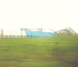 This photograph was by Jackie Rhame of Florian, Alabama during a visit to a Six Flags Great America Amusement Park in Arlington, Texas. It clearly shows a semi-transparent figure of a little boy in the grass dressed in a red sweater with a white collar or shirt. The camera was a C- 126 and it was misting rain and humid outside. She was simply taking a picture of the Texas Giant. |